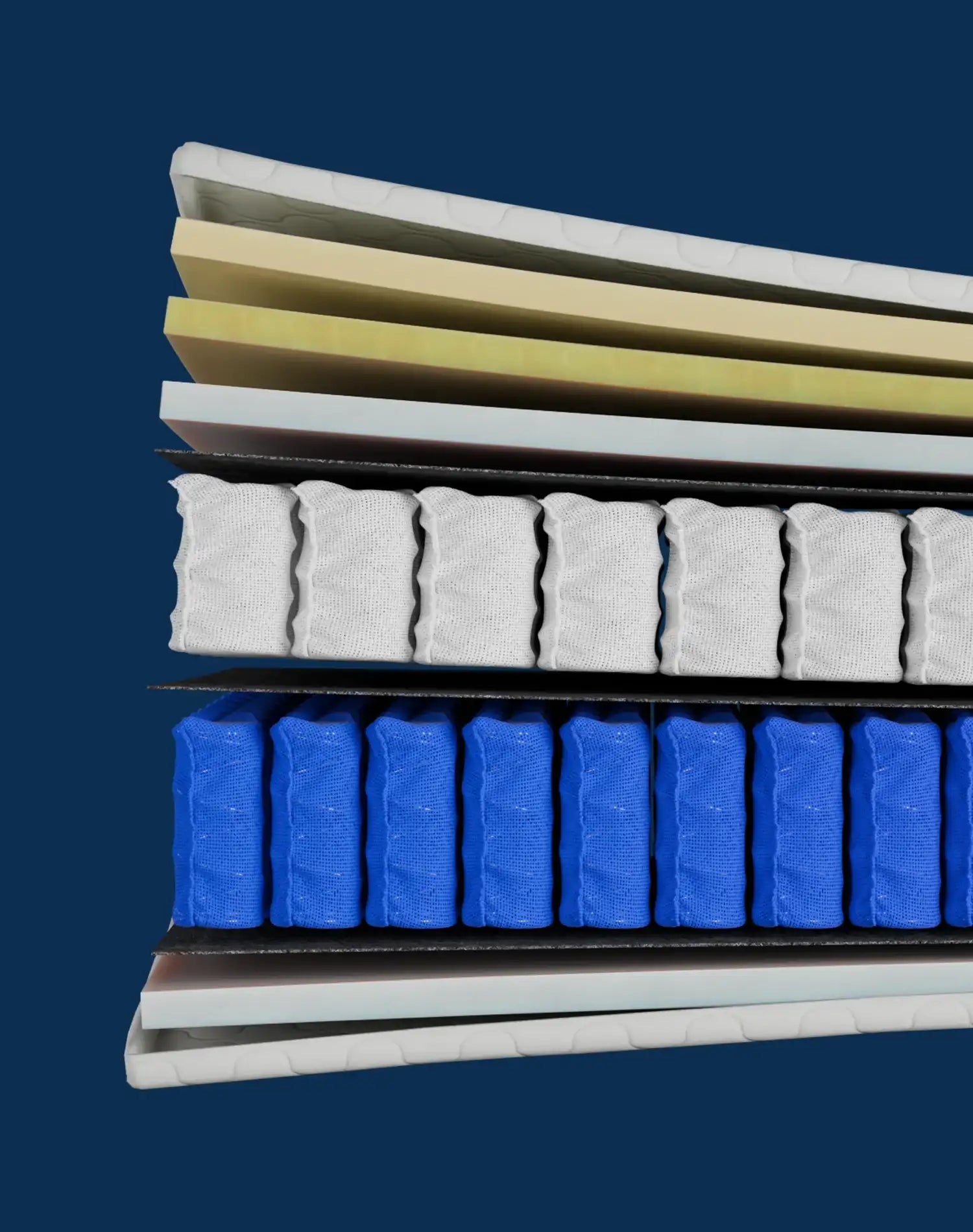 System sprężyn kieszeniowych z technologią 7 stref zapewnia elastyczność punktową i optymalne podparcie dla kręgosłupa, dostosowując się do anatomicznej budowy ciała.